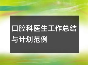 《口腔科医生工作总结与计划范例》属于工作计划中比较优秀的内容,欢迎参考。