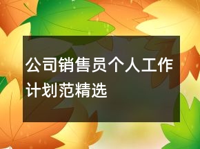 《公司销售员个人工作计划范精选》属于工作计划中比较优秀的内容,欢迎参考。