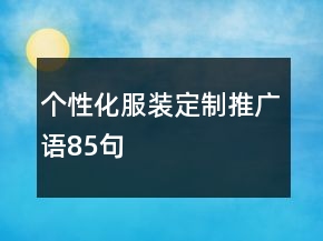 《个性化服装定制推广语85句》属于口号中比较优秀的内容,欢迎参考。