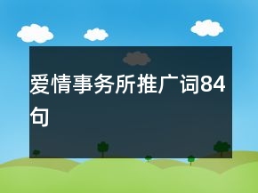 《爱情事务所推广词84句》属于口号中比较优秀的内容,欢迎参考。