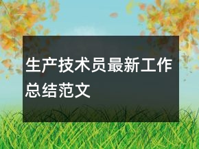 《生产技术员最新工作总结范文》属于个人工作总结中比较优秀的内容,欢迎参考。