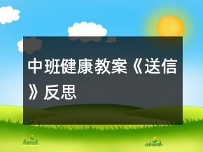 《中班健康教案《送信》反思》属于幼儿园中班教案中比较优秀的内容,欢迎参考。