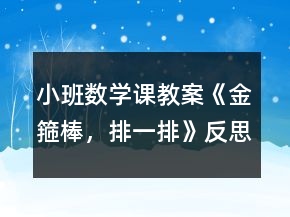《小班数学课教案《金箍棒,排一排》反思》属于幼儿园小班教案中比较优秀的内容,欢迎参考。
