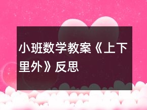《小班数学教案《上下里外》反思》属于幼儿园小班教案中比较优秀的内容,欢迎参考。