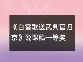 白雪歌送武判官归京说课稿由小编整理,仅供参考:
