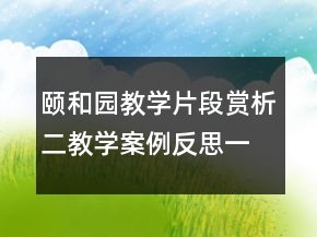 《颐和园教学片段赏析二教学案例反思一等奖》属于教学反思中比较优秀的内容,欢迎参考。